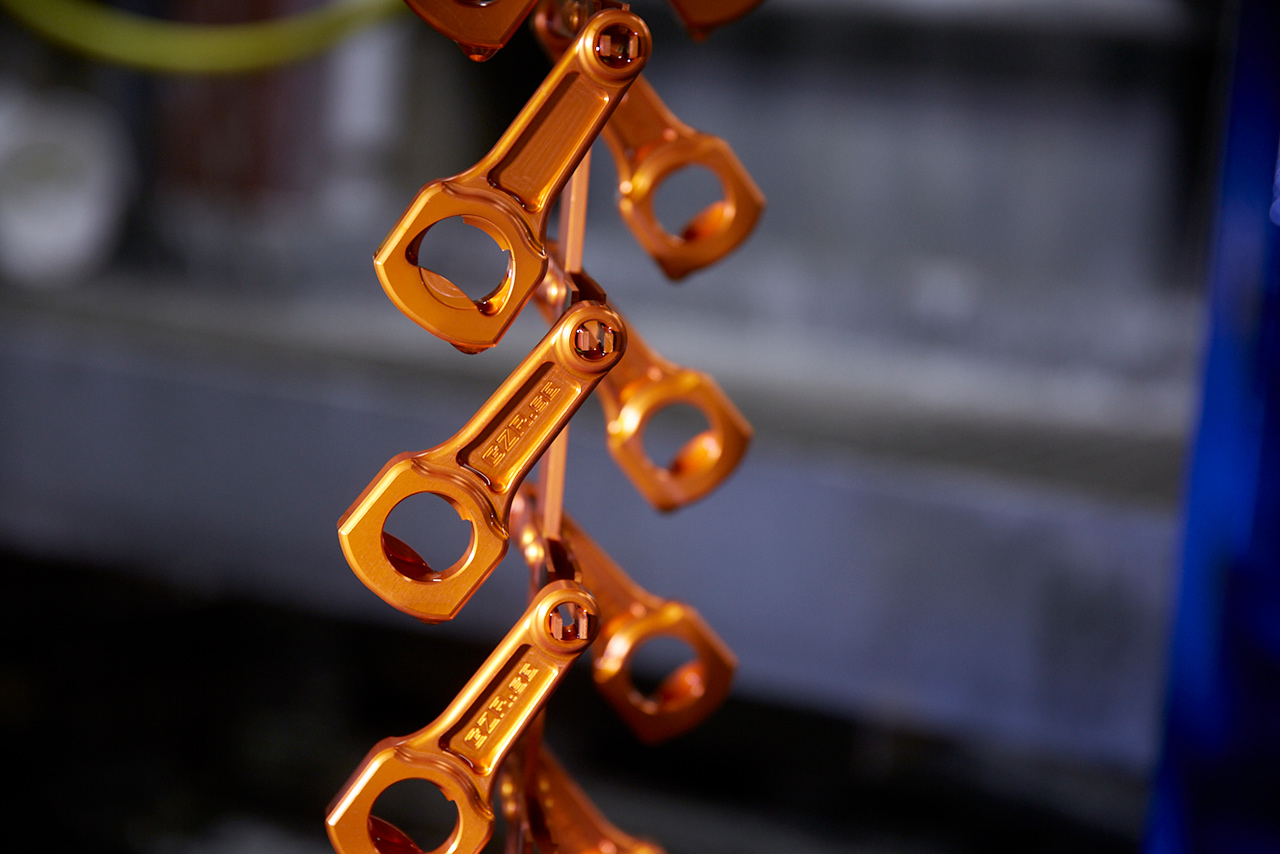Ytbehandling går oftast till så att detaljen hängs upp på en ställning så att ström kan tillföras och detaljerna kan lyftas i och ur ytbehandlingsbadet. Det är därför bra om det finns hål eller liknade i vilket detaljen kan spännas fast och där kontaktmärken kan accepteras.